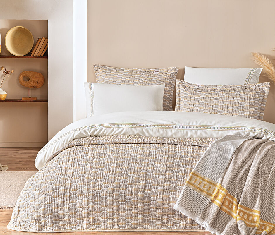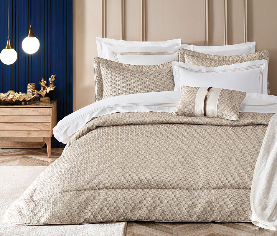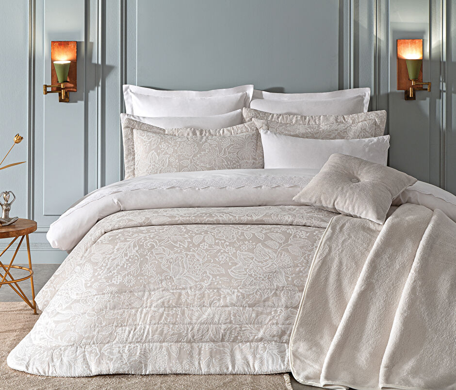 Yaz aylarında serinlik sağlayan ince pike setleri, hafifliğiyle ferahlık sunarken kış aylarında kalın yorgan ve battaniye içeren ürün setleri sıcak ve konforlu bir uyku ortamı yaratır. Puffy çeyiz seti türleri hem estetik beklentileri karşılar hem de günlük kullanıma uygun pratik çözümler sunar. Bu çeşitlilik sayesinde yatak odası evlilik seti seçimi yaparken ihtiyaçlarınıza en uygun modeli kolaylıkla bulabilirsiniz.