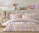 Ferah Uyku Keyfi Nefes alabilen %100 pamuk kumaş kalitesi; nevresim, çarşaf ve volanlı yastık kılıfı içeriğiyle uykuları keyfe dönüştürüyor.