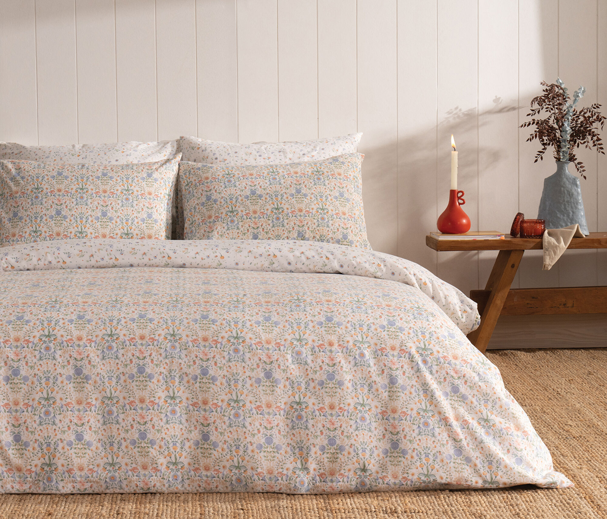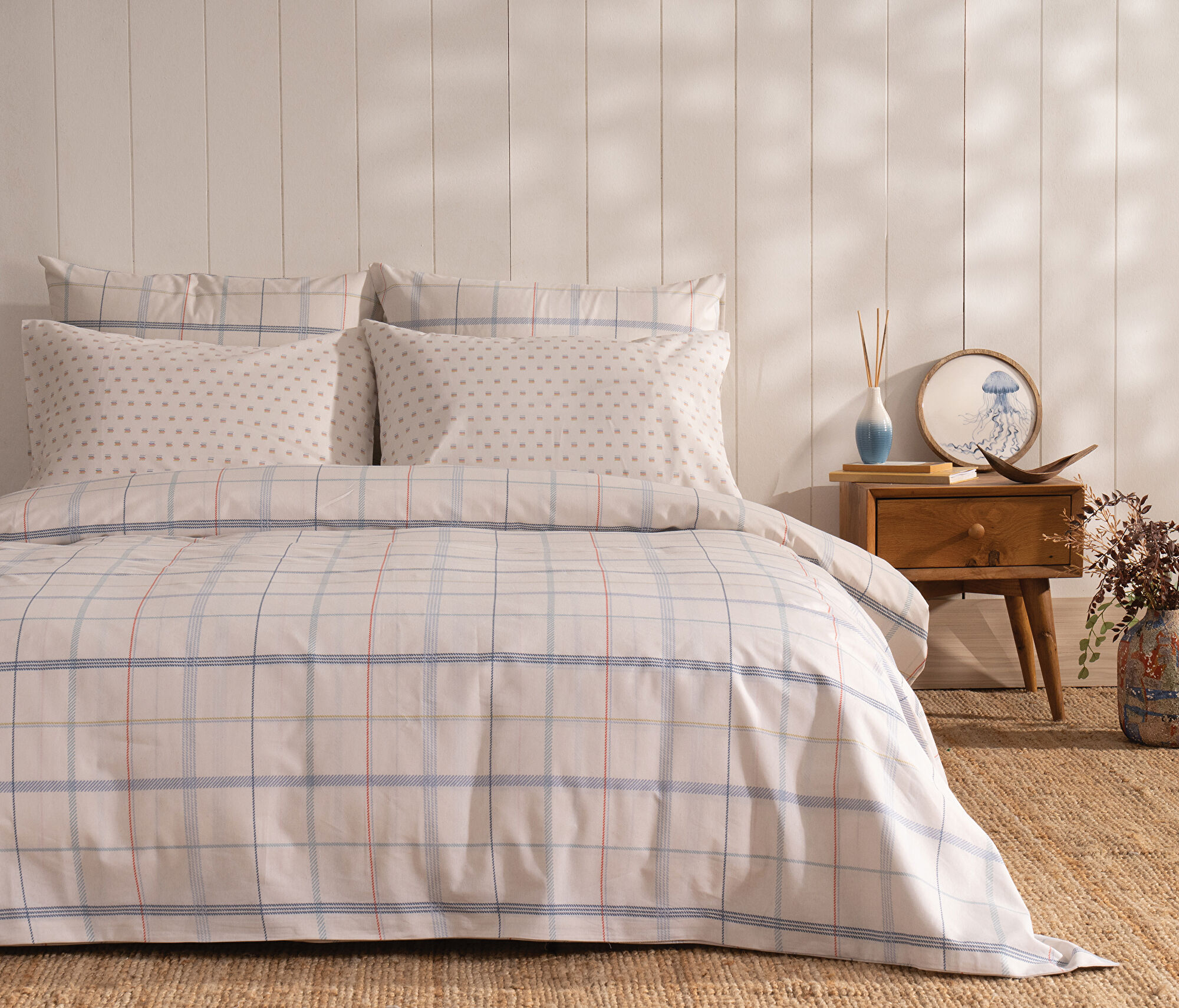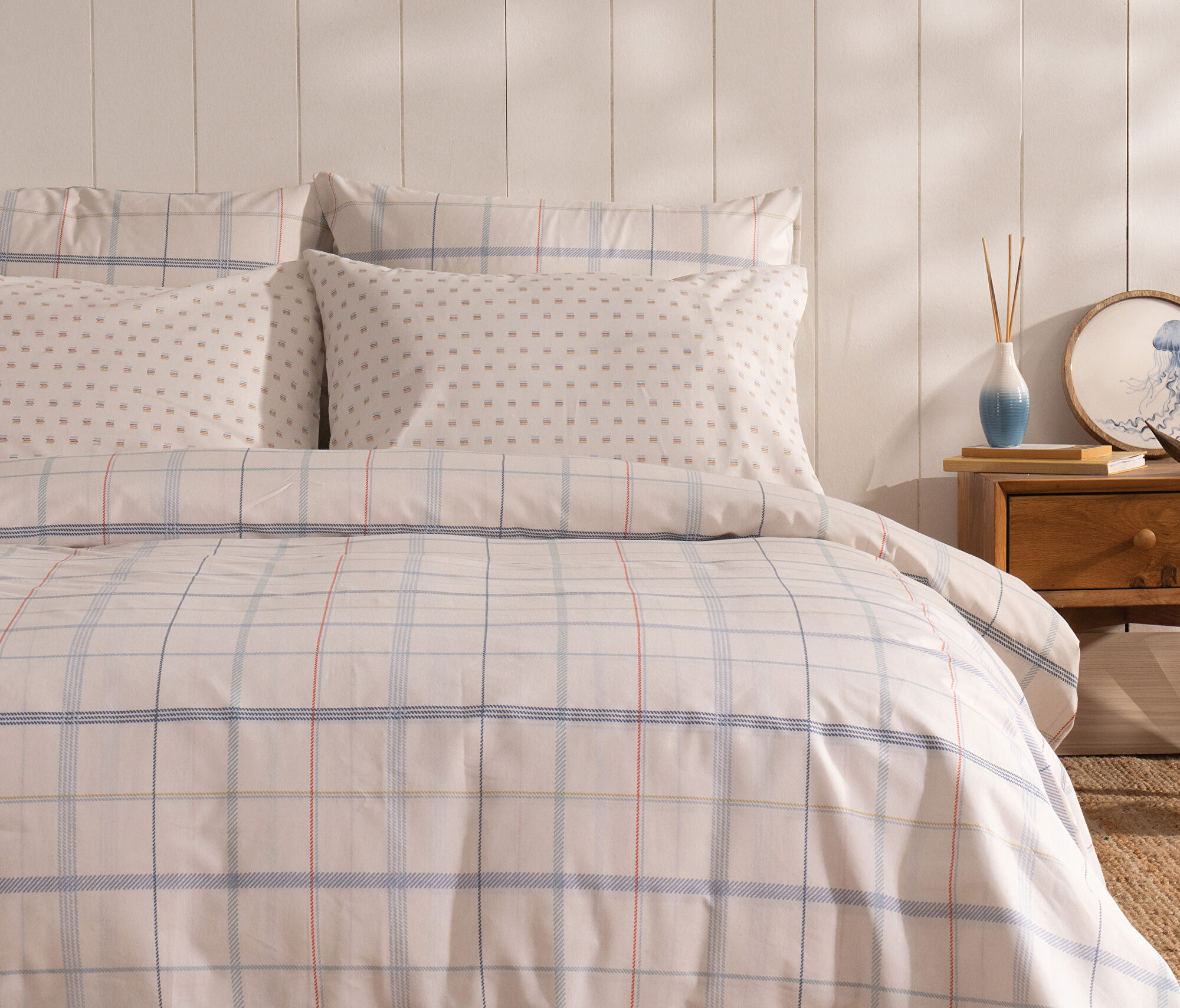 Baskılı veya çift taraflı setler iki ürünün şıklığına ve kullanışlılığına tek seferde sahip olabilmenizi sağlar. Odanın atmosferini değiştirmek istediğinizde, setin diğer yüzünü kullanarak pratik bir dekoratif dönüşüm yaratabilirsiniz. Baskılı modeller, yatak odasına canlılık katarken, çift taraflı kullanım avantajına bağlı çok yönlülük sunar.