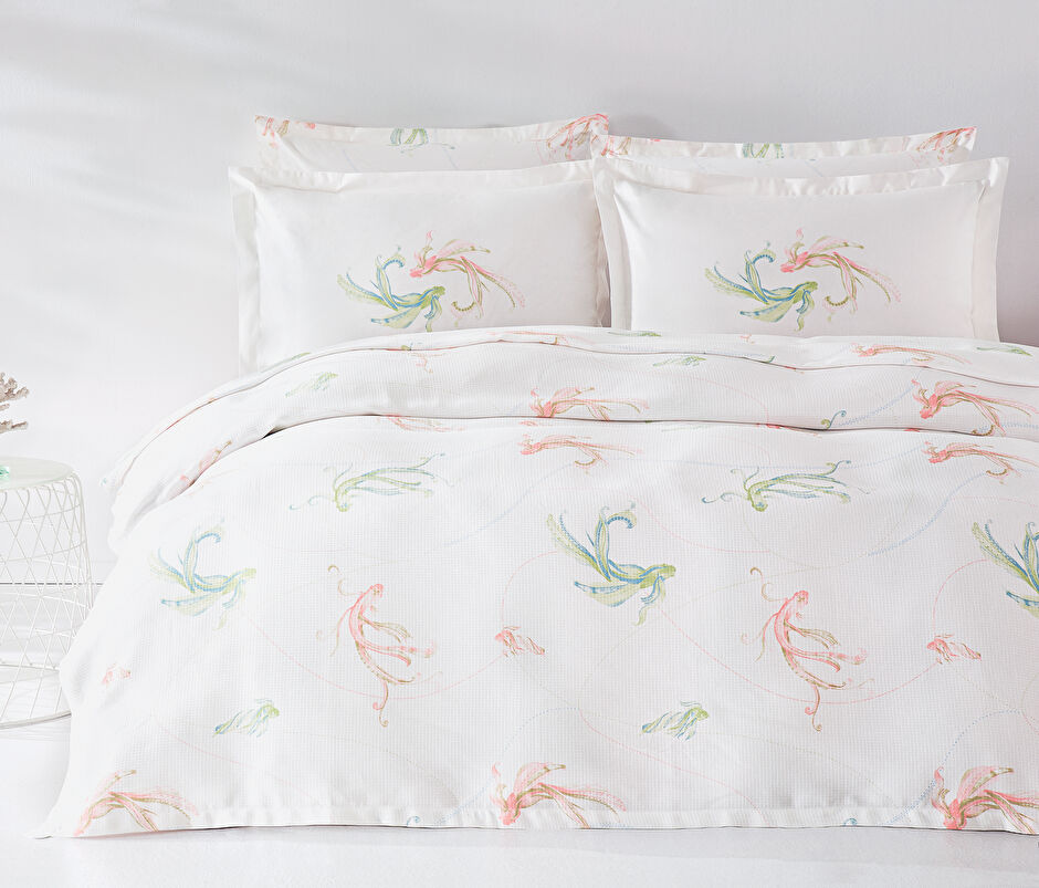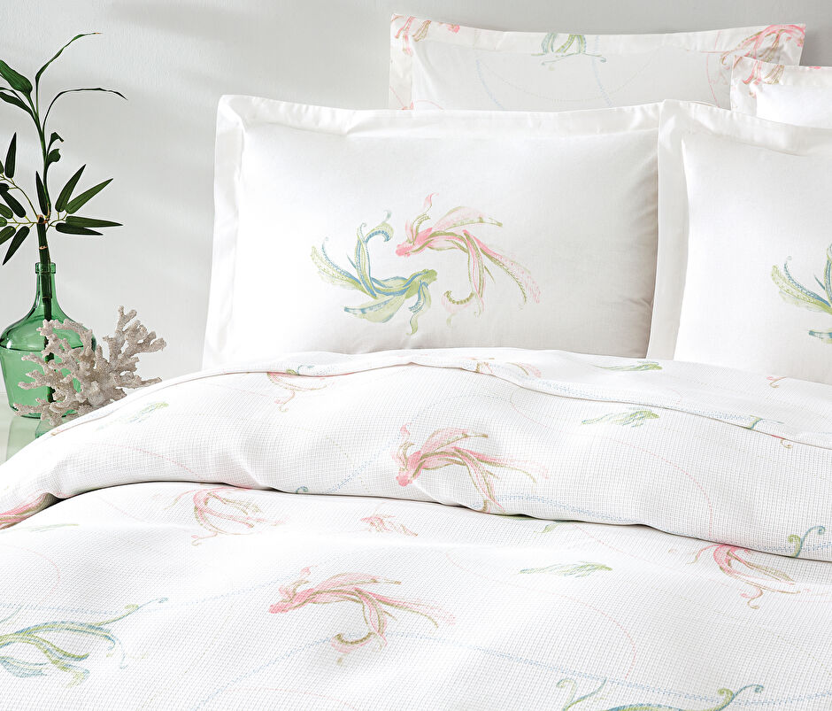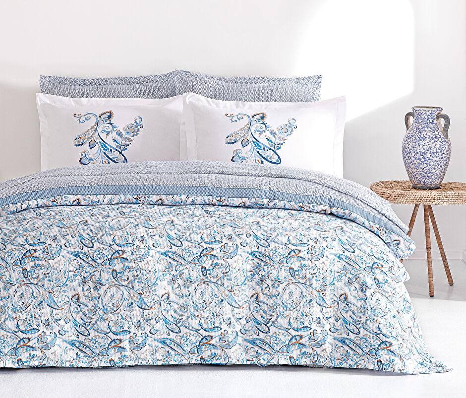 Desenli pike, yatak odasına estetik hareketlilik katar. Minimalist çizgilerden romantik floral desenlere, geometrik formlardan modern tasarımlara kadar geniş seçenekleriyle her dekorasyona uyum sağlar. Odanın karakterini yansıtan bir tablo gibi işlev gören desenli pike takımı modelleri yatak odasının havasını tek dokunuşla değiştirme gücüne sahiptir.
